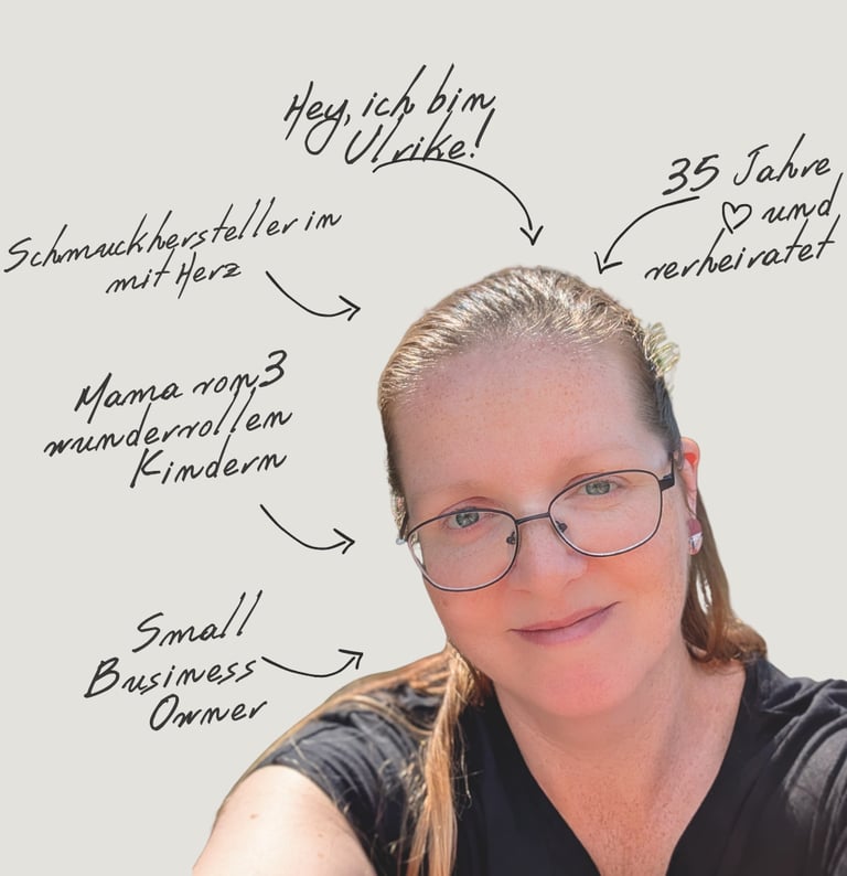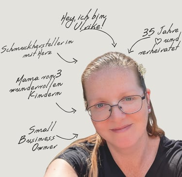 Ich bin Ulrike – Schmuckherstellerin, Ehefrau und stolze Mama von drei wunderbaren Kindern. Die Reise von Ullis Kreativkeller begann in einer ganz besonderen Zeit: Während der Elternzeit mit meinem dritten Kind entdeckte ich meine Leidenschaft für das Erschaffen von Schmuck.
